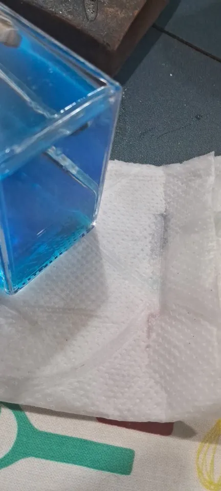 Unfortunately, there are more solid particles in the blue liquid.
