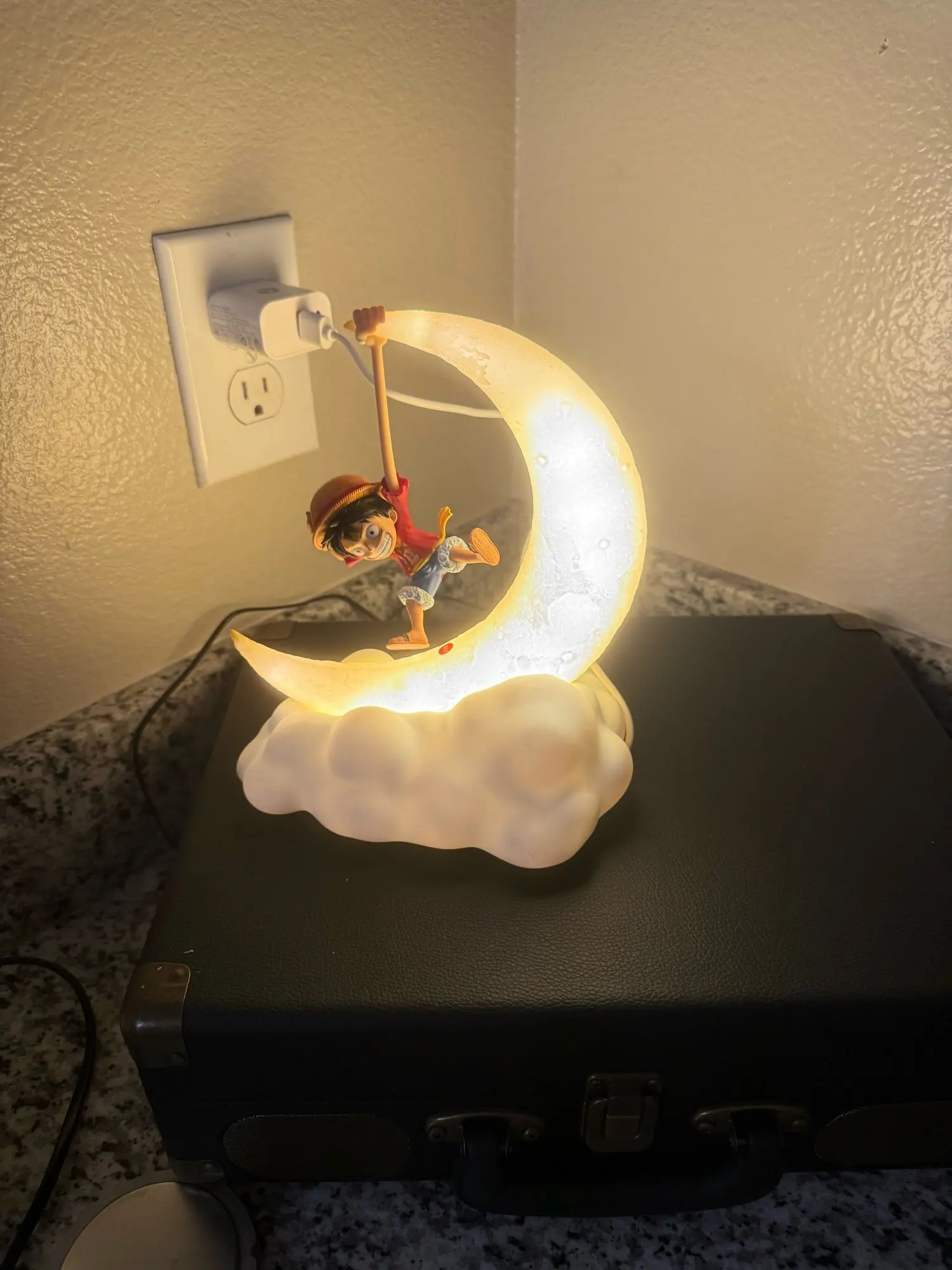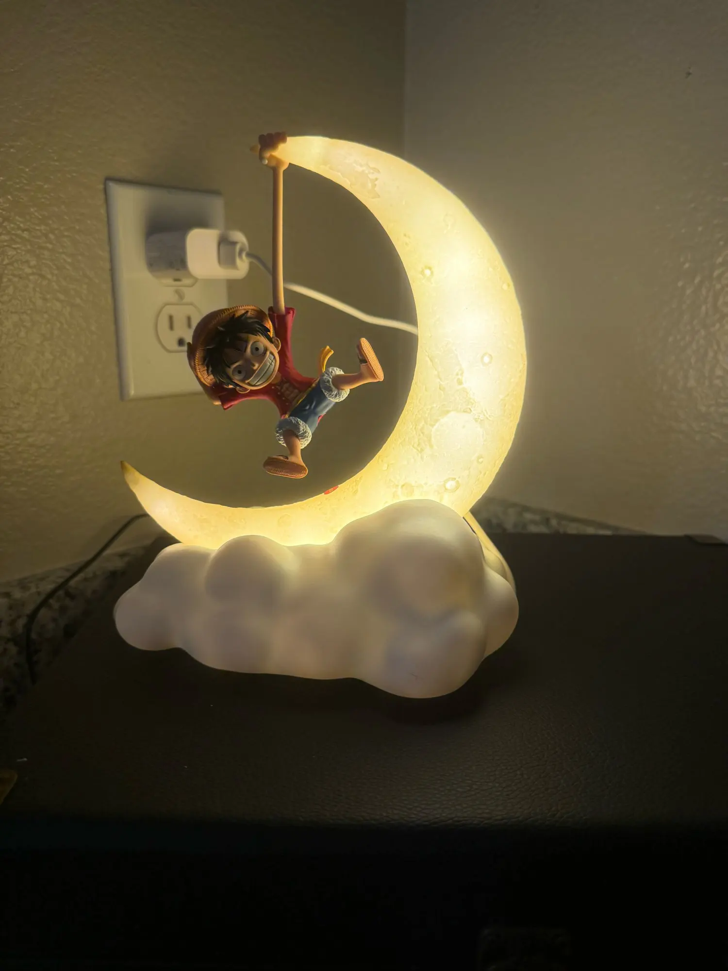 I can say that it was my son's Christmas gift, he loves it and that filled my heart! Perfect little lamp just as seen in the image, I have to say it doesn't turn on by pulling Luffy, it turns on by pressing the button below! I don't know if it's rechargeable or if it needs to stay connected permanently! They send it well protected wrapped in a spectacular anime box, honestly 10 out of 10 I recommend it.